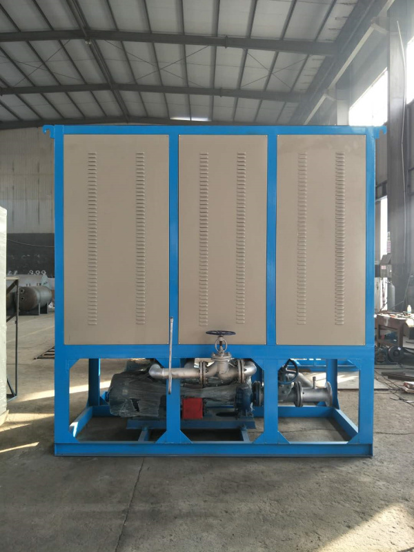 二、電加熱導熱油爐工作原理:  對于電加熱導熱油爐,熱量是由浸入導熱油的電加熱元件產生和傳輸的,以導熱油為介質,利用循環泵,強制導熱油進行液相循環,將熱量傳遞給用一個或多種用熱設備,經用熱設備卸載后,重新通過循環泵,回到加熱器,再吸收熱量,傳遞給用熱設備,如此周而復始,實現熱量的連續傳遞,使被加熱物體溫度升高,達到加熱的工藝要求。電加熱導熱油爐系統由防爆電加熱器、有機熱載體爐、換熱器(可配置)、控制柜、熱油泵、膨脹槽等組合成一個撬塊,用戶只僅需接入電源、介質的進出口管道及一些電氣接口即可使用。      導熱油爐(又稱導熱油加熱器)是將是將電加熱器直接插入有機載體(導熱油)中直接加熱,利用循環泵,強制導熱油進行液相循環,將熱量傳遞給用一個或多種用熱設備,經用熱設備卸載后,重新通過循環泵,回到加熱器,再吸收熱量,傳遞給用熱設備,如此周而復始,實現熱量的連續傳遞,使被加熱物體溫度升高,達到加熱的工藝要求。