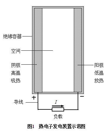 熱電子發(fā)電裝置的基本構(gòu)造如圖1所示,說(shuō)明如下: