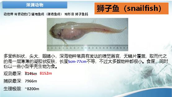 在2016年的考察中,首先對(duì)不同深度的海水波速進(jìn)行測(cè)量,其次是用攝像機(jī)在海底拍攝,收集深海的動(dòng)物和植物的情況,再次就是收集活的動(dòng)物。我們收集到在8000米以下生活的獅子魚和鉤蝦??梢哉f,我國(guó)對(duì)深海的生物研究有發(fā)言權(quán)了。