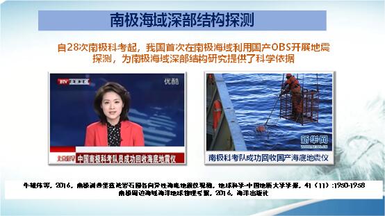 在南極地區(qū),我國(guó)有二處陸上地震臺(tái)站。在第28次南極科考時(shí)投放了海底地震儀,過了一年,在第29次南極科考船去那片海域回收時(shí),因那片海域結(jié)冰,沒法回收。根據(jù)設(shè)計(jì),海底地震儀最大留海時(shí)間為一年,大家都擔(dān)心失掉這兩臺(tái)儀器了。可喜的是,又過了一年那片海域已經(jīng)沒有冰了,在回收時(shí),海底地震儀竟然浮到海面,這是在海底記錄時(shí)間最長(zhǎng)的一次試驗(yàn)。也為南極海域深部結(jié)構(gòu)研究提供了科學(xué)依據(jù)。