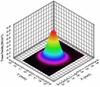 2013年10月,電子所實(shí)現(xiàn)了國內(nèi)首次DPAL銫激光輸出,激光輸出功率394mW,光光效率7.4%,實(shí)驗(yàn)光路如圖2-9所示。對各項(xiàng)參數(shù)進(jìn)一步優(yōu)化后,所得輸出激光具有極好的光束質(zhì)量,光束功率密度分布如圖2-10所示。激光器光束質(zhì)量M2因子接近1。實(shí)驗(yàn)證明了DPAL在光束質(zhì)量方面的潛力是極大的。