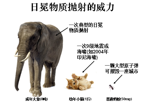 萬物生長靠太陽,地球地表的天氣與太陽有關(guān)系,而空間天氣的變化也與太陽有關(guān)。太陽上有一種日冕物質(zhì)拋射的現(xiàn)象,太陽把一團(tuán)物質(zhì)拋射出來,形成高速的太陽風(fēng),它拋射的能量是地球上原子彈威力的1600萬倍,一顆原子彈可以摧毀一座城市,足見威力。 而與太陽拋射的能量相比,差距太大了。