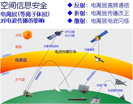 無線電波的傳播依賴于電離層,它們要么在電離層反射、要么穿過電離層、要么在電離層折射。電離層的變化就影響無線電波的傳播。人類需要通過各種模型的計算,對電離層傳播進(jìn)行改正,保證無線電通訊不受影響,保證定位的精度。